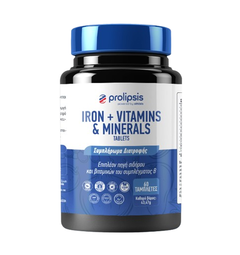 Το συμπλήρωμα Σιδήρου της Prolipsis διαθέτει τον κατάλληλο συνδυασμό Σιδήρου και βιταμινών και μετάλλων που μπορούν να συμβάλλουν στην καλύτερη δυνατή απορρόφησή του και κατ΄επέκταση στη βελτίωση των επιπέδων Σιδήρου, στη μείωση της κόπωσης και άλλων συμπτωμάτων που οφείλονται στην έλλειψή του.